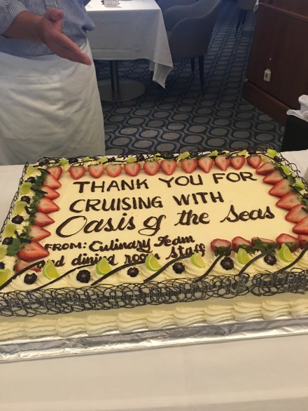 The Oasis of the Seas always does something to make you feel special. Following is a pic of the cake that was served with lunch. Homemade vanilla cake with buttercream icing! Yum!!